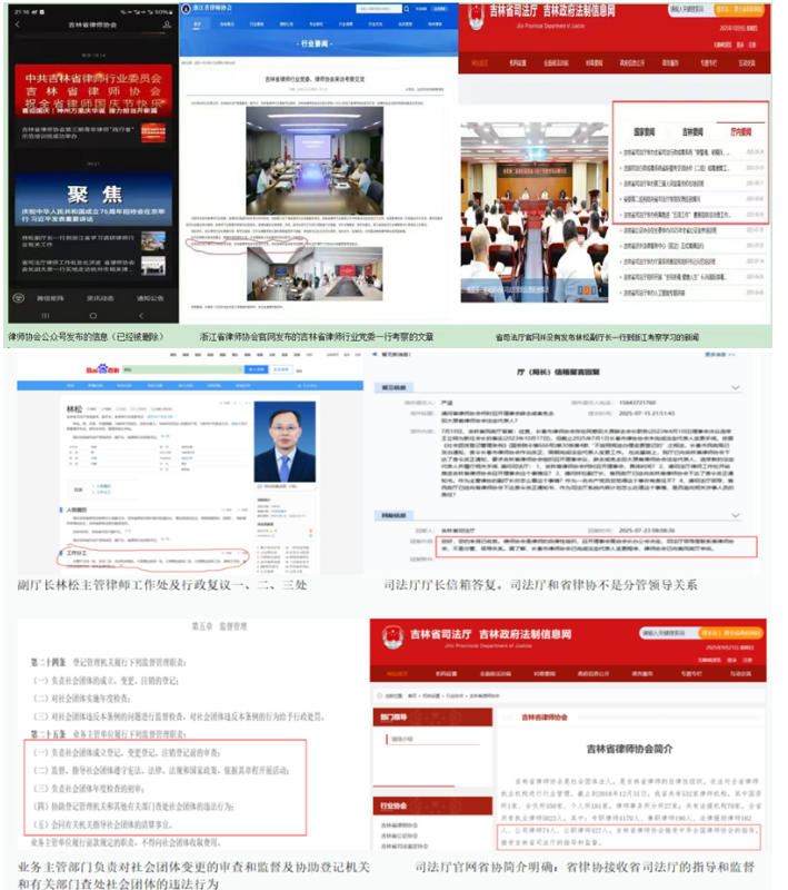 林松副厅长还被指涉嫌操纵吉林省市场监督管理厅法律顾问招标过程。根据公开信息,在吉林省市场监督管理厅法律顾问项目招标期间,林松副厅长带队,田大原与省律协名誉会长王哲等人共同参与,一行五人"专程"前往浙江等地进行"考察交流"。这次考察的时间点与招标关键期高度重叠,引发强烈质疑。